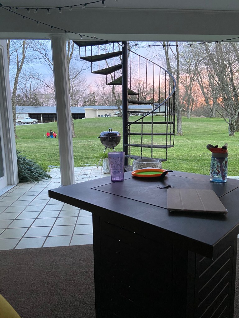 Not sweeping all day. Ha! I’d be a crazy person if I did that. I mean, I did sweep at the end of the day, but the morning, I simply started off my “work from home” day, in the crisp spring air, laptop in hand and sunshine glistening off the freshly mowed (from the day before-otherwise I’d been sneezing up a storm) grass. My kids got there and we continued to just stay on the porch/yard. Not necessarily on purpose. It just, happened.