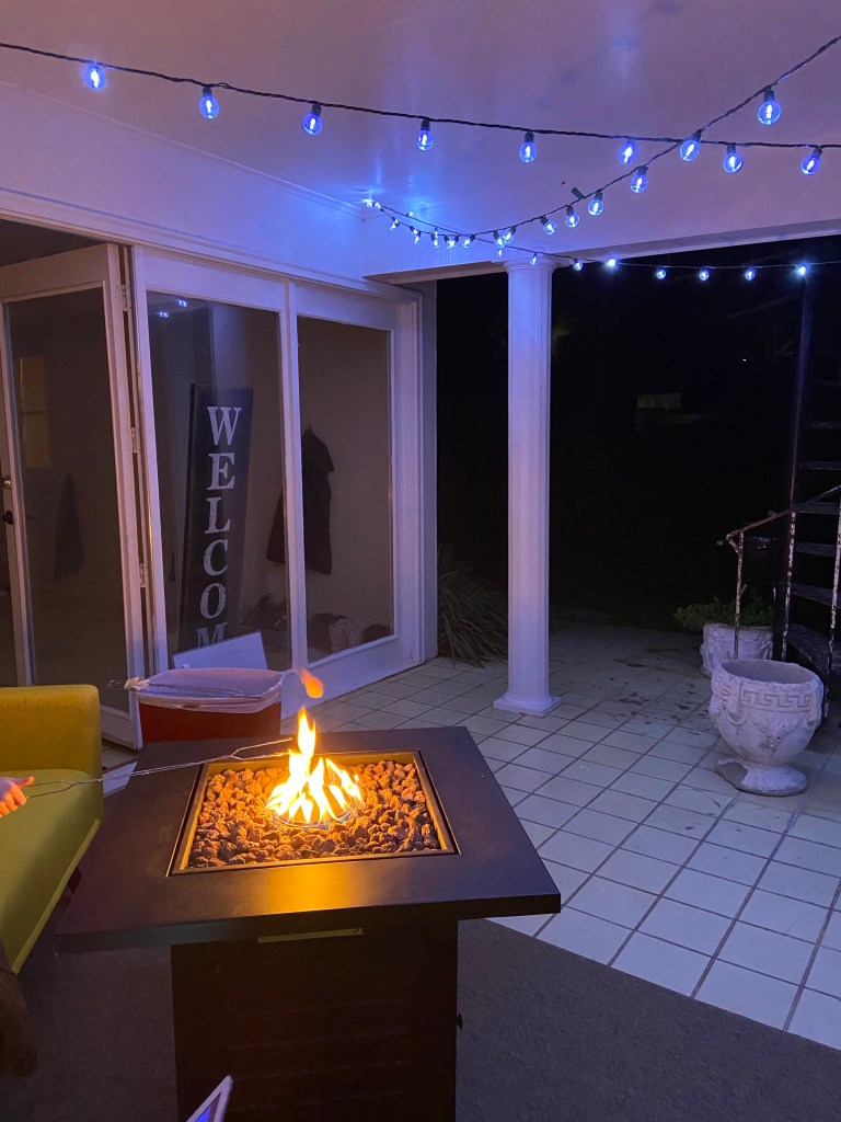 Fast forward 3 years or so…And I now have the second home with a covered porch. I call it a home; it’s an apartment. An apartment which is the basement of a home. A split level home, where the top floor has tenants as does the bottom. Confusing I know. Anyway, what is considered my “front” porch, is actually below the top floor tenants’ covered back porch. Further confusion. …but it’s absolutely lovely. It’s tiled flooring, which I love, because no fear of splinters if you’re without shoes. It has 4 circular columns, which line the edge of the porch to the yard. Parallel to the columns is the exterior of the red brick home, with a large 2-panel window with white shutters. Then a full glass wall / door into the “entry way” of my home. I’ve added a rug, a couch, and a fire pit (which I’ve wanted for a while and finally bought for myself this last year). And to top it all off, I’ve lined the white ceiling with outdoor bulb lights for evening time porch-sitting. Side Note: I’m still trying to outsource the work of hanging a TV for music or even movie watching but have yet to find anyone willing to do this task. Anyway, this home, this porch, is by far probably my most favorite place on earth. Aside from the beach (keep that in mind, as you’ll want to remember that for later in this post). One of my favorite humans even calls it “The Happy Place.”